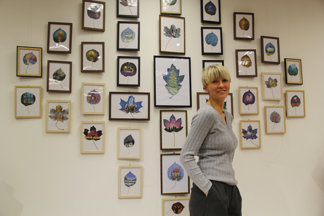 Kristina taip pat papasakojo, kaip praėjusį rudenį gimė idėja piešti ant medžių lapų – kilo mintis pabandyti lapus panaudoti vietoje popieriaus. Bandymas virto atradimu: „Buvo įdomu išbandyti save ir pažiūrėti, ar smulkiems teptuko potėpiams užteks kantrybės. Ir pasirodo, ne tik užteko, bet ir pavirto savotiška meditacija.“ Taip gimė paroda, kurioje lapai tapo paveikslais.
