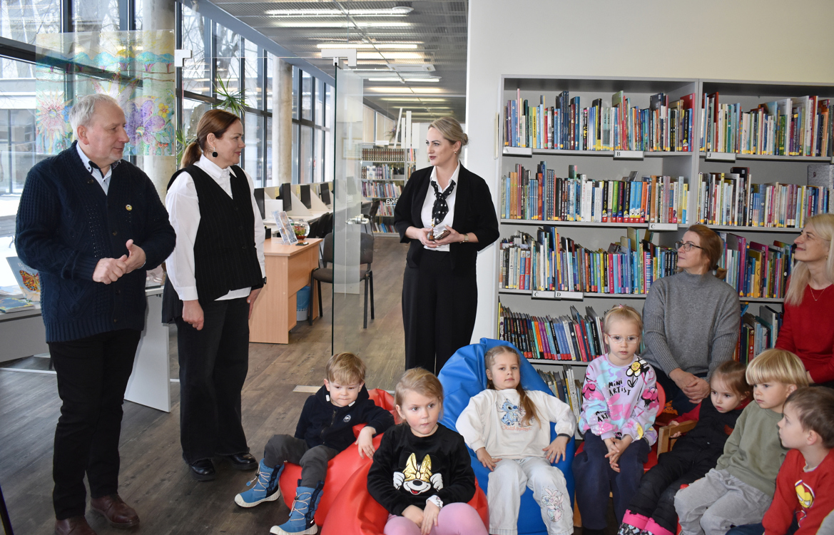 Už lango spaudžiant žiemos šaltukui, 2026 metų sausio 23 dieną į Vydūno viešąją biblioteką atvykusius Pagėgių savivaldybės Pagėgių lopšelio-darželio ikimokyklinių ir priešmokyklinių grupių auklėtinius ir jų mokytojas bei padėjėjas pasitiko vyresnioji bibliotekininkė darbui su vaikais Gitana Baužaitė. Ji pasveikino gausų būrį jaunųjų smalsučių apsilankius knygelių namuose ir palinkėjo, kad knygos taptų gerais draugais. Šiltą sveikinamąjį žodį tarė ir iš sostinės atvykusį garbų svečią – poetą Kęstutį Ivinskį pristatė bibliotekos direktorė Inga Kuzmarskienė. Ji apžvelgė plačią šiltos, jaukios, šviesios ir prasmingos šio rašytojo kūrybos temų paletę – ne tik sušildančią mažas širdeles poezijos posmais, bet ir ugdančią vertybinius pamatus, auginančią kūrybines jaunosios kartos galias. Bibliotekos vadovė akcentavo, kaip svarbu nuo ankstyvųjų gyvenimo metų ugdyti žmogaus meilę knygai, literatūriniam žodžiui, gimtajai kalbai ir savo šaliai.