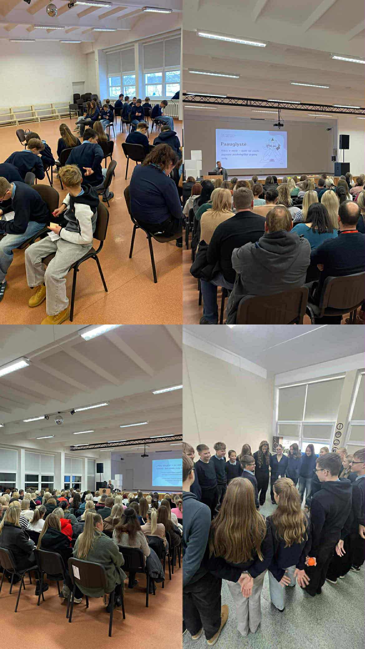 7 klasių mokiniai kartu su psichologais Laurynu Jagelavičiumi, lektoriumi Laurynu Nikeliu ir psichologe Audrone Šlepavičiūte gilinosi į elgesio modelius, stiprino tarpusavio bendravimo įgūdžius ir kalbėjosi apie gyvenimo pasirinkimus, padedančius išvengti žalingų įpročių.