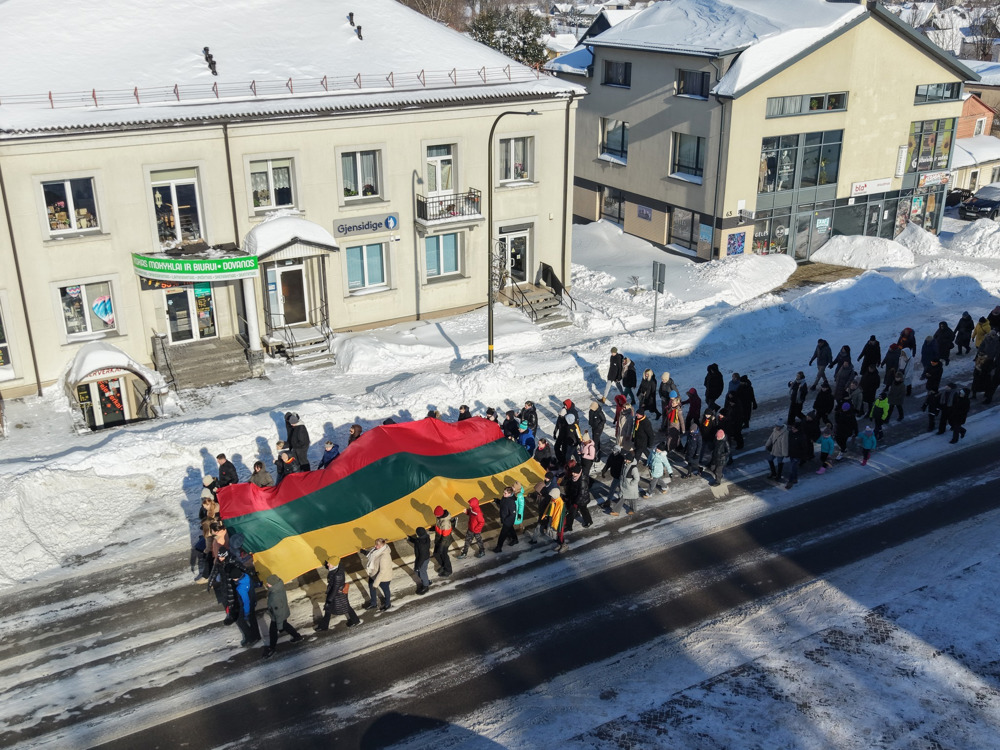 Kelmėje iškilmingai paminėta Vasario 16-oji – Lietuvos valstybės atkūrimo diena. Šventė prasidėjo tradicine miesto gatvėmis eisena, kurioje buvo nešama didelė trispalvė – vienybės ir pagarbos Lietuvai simbolis.